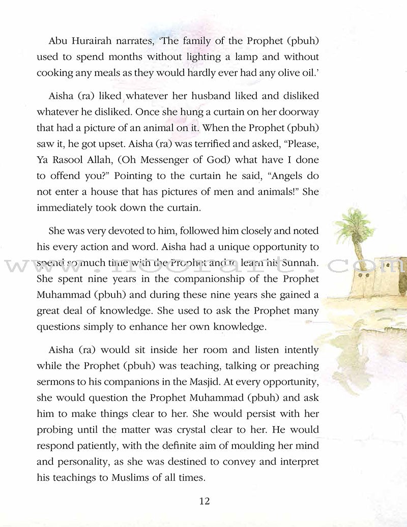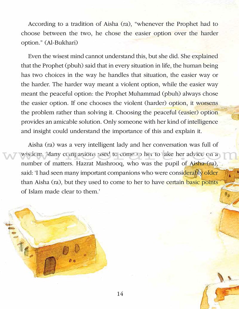Aisha (ra), the wife of the Prophet Muhammad (pbuh), was an extraordinary human being. She was highly learned and is considered to be one of the foremost scholars of the early Islamic period. She recorded the life of the Prophet Muhammad (pbuh) and, being a brilliant scholar and an excellent teacher, she explained it with intelligence and insight.