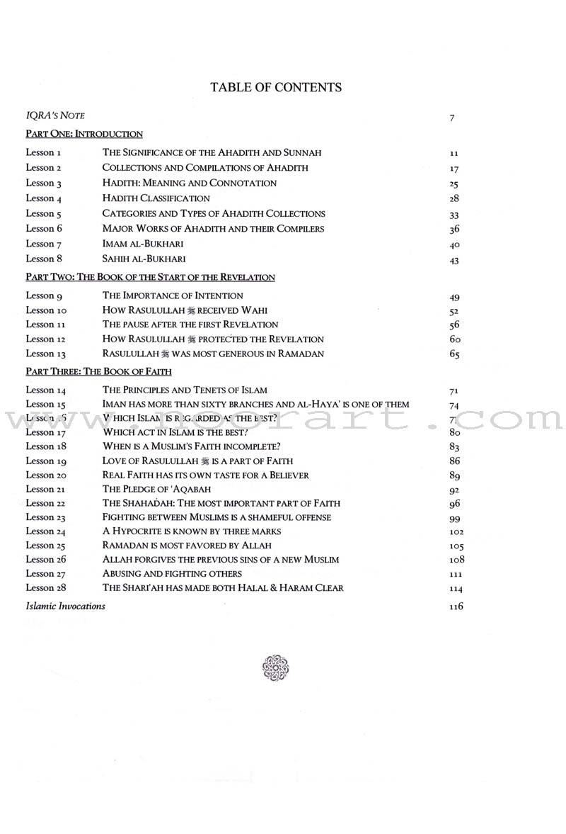 This publication contains selected samples of ahadith on some important everyday topics relevant to students and general public. Each hadith is produced in Arabic with a lucid translation into the English language. This textbook provides information about the ahadith narrators and gives full explanation of each tradition.