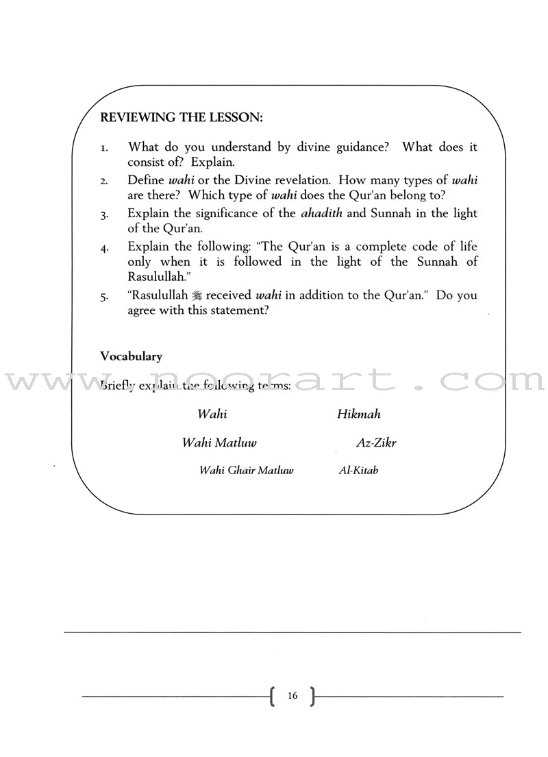 Hadith Studies for High School aims to provide high school students with a foundational awareness of hadith sciences (‘ulum ul-hadith) as well as the major collections of ahadith, which are part and parcel of Islamic religious low and spiritual endeavors. This important educational program on hadith sciences is recommended for the students of Islamic Studies at high school level, and beyond. Teachers will find it beneficial to use this book for group reading in the classroom as well as private study at home. Students will find it most useful as a means of acquiring clarity on the important points of hadith sciences and the role of the Prophet as the chief interpret of the Message of Islam.