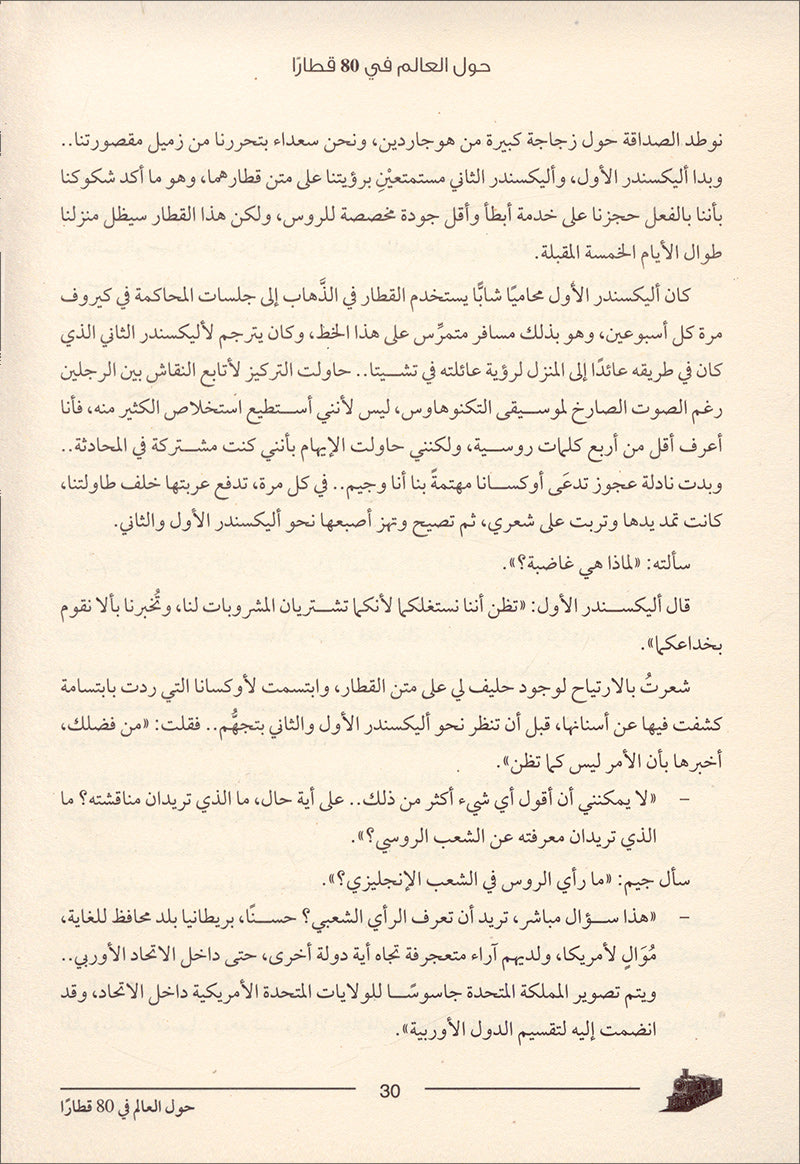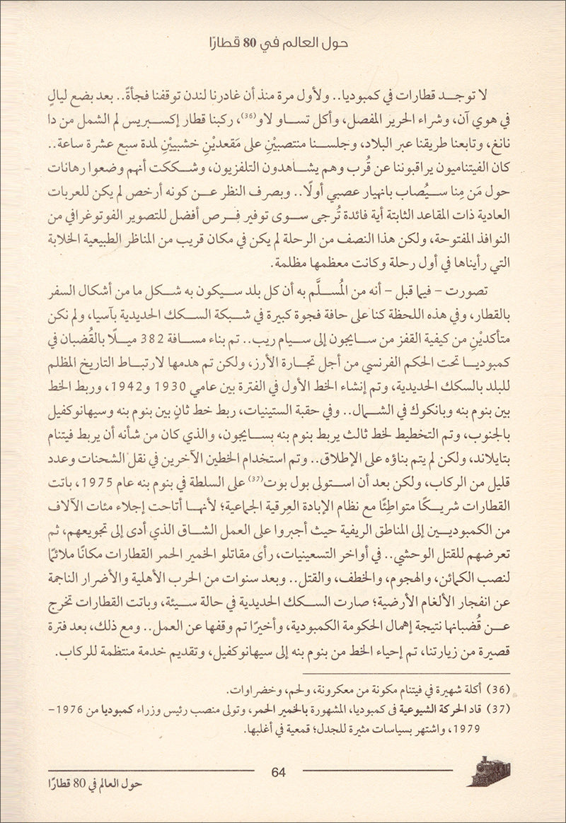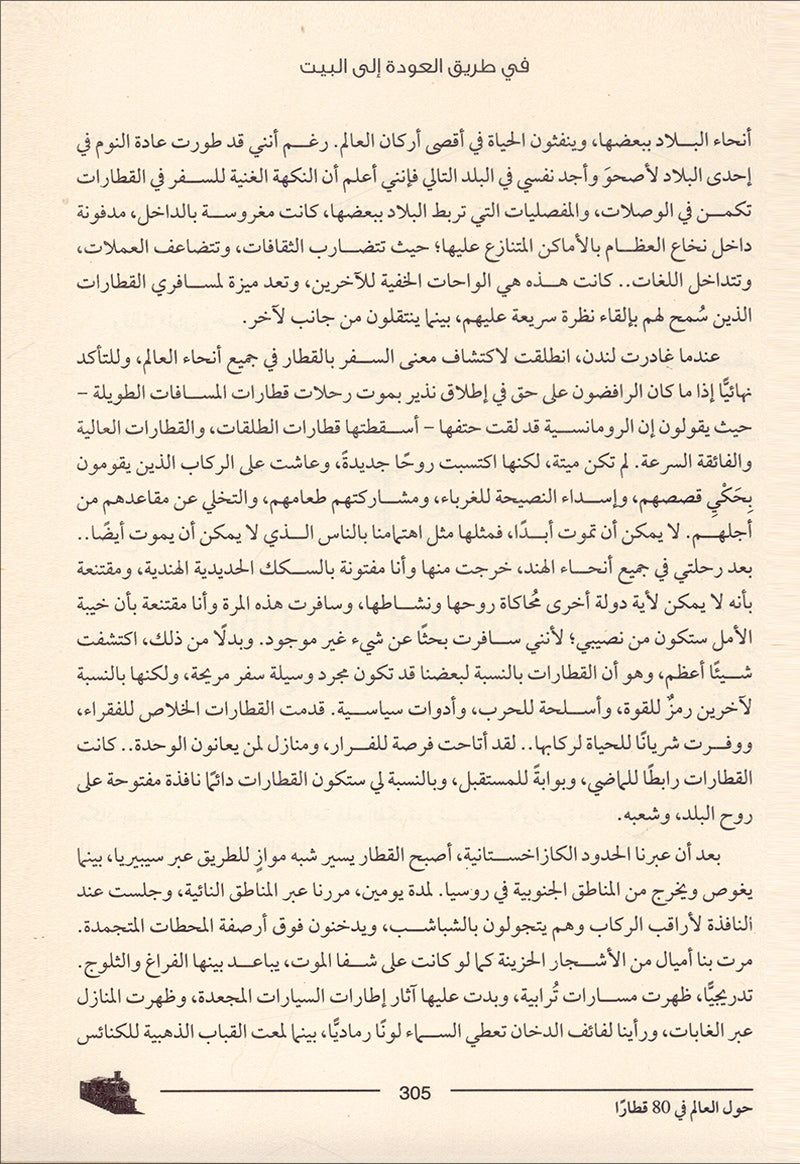 عندما أعلنت مونيشا راجيش عن خططها للسفر حول العالم باستخدام رحلات ثمانين قطارًا، واجهها كثيرون بالتعجب وعدم التصديق، ولكن لم يمضِ وقت طويل قبل أن تخطط بعناية لمسار رحلة سيغطي 000,45 ميلٍ ، وهو ما يبلغ ضعف محيط الأرض تقريبًا، على امتداد أكثر شبكات السكك الحديدية روعةً واستثناءً؛بدءًا من المرتفعات التي تكشط السحب التي يقطعها خط سكة حديد شينغهاي – التبت إلى الملاءات الحريرية الرائعة على قطار فينيسيا سيمبلون أورينت إكسبريس.