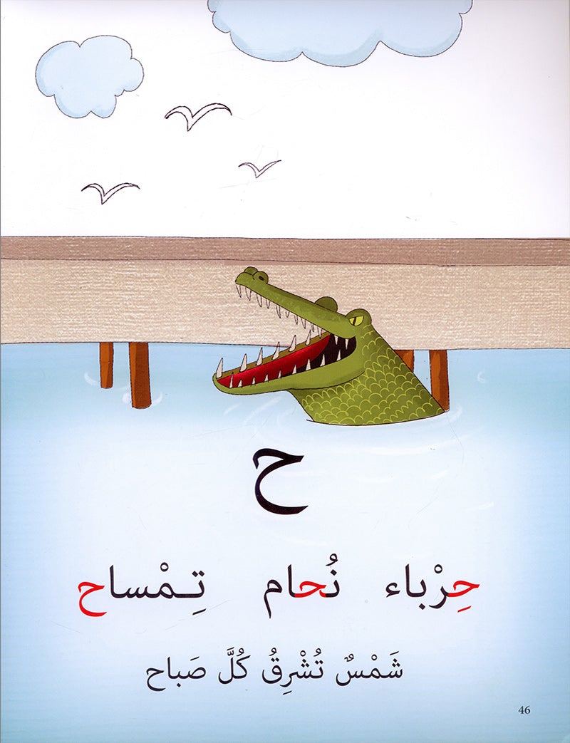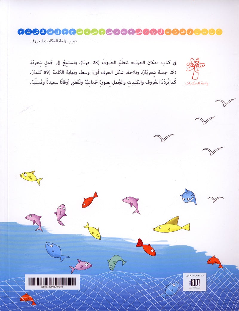 في كتاب «مكان الحرف» نتعلّمُ الحروفَ (28 حرفا)، ونستمِعُ إلى جُملٍ شِعريّة (28 جملة شِعريّة)، ونلاحظ شكل الحرف أول، وسط، ونهاية الكلمة (89 كلمة)، كَما نُردِّدُ الحُروفَ والكلماتِ والجُملَ بِصورةٍ جَماعِيَّة ونَقضي أوقاتًا سعيدةً ومُسلِّية .