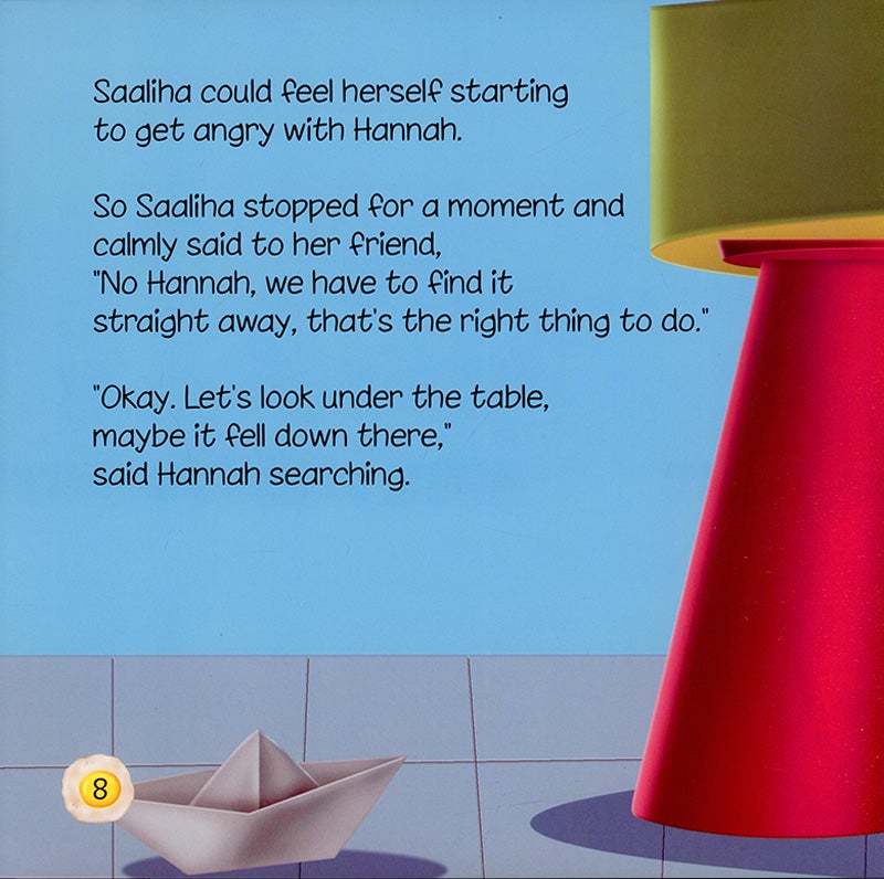 Saaliha lends her friend her favorite pencil, but she accidentally loses it. How will Saaliha react? Will she get angry at her friend? No, Saaliha shows us the best way to act when something like this happens. Saaliha learns that controlling your anger isn't that difficult, and you can too.
