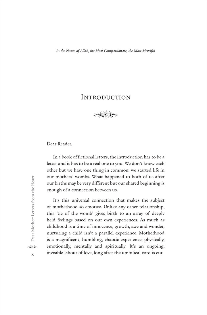 Dear Mother… brings together mothers of all ages and backgrounds in a compendium of fictional letters, written from the heart. Great challenges and responsibilities, hopes and disappointments are explored without apology. As one mother prepares for a new-born, another shares her experience of being a single parent. Why is a mother at the primary school gate feeling burnt out by 9 am and what advice does a grandmother pass down to her granddaughter? Whether she’s sitting in the ante-natal clinic, on a bus or in the masjid, these letters reveal a variety of mothers’ inner dialogue – one which is rarely heard in society.