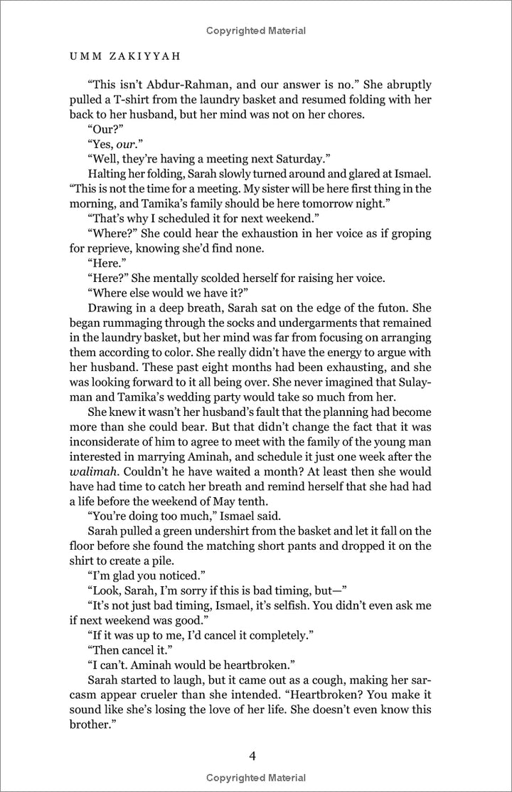 At the heart of the novel is the story of Ismael, a forty-seven-year-old biracial son of a white mother and black father, and Sarah, a forty-nine-year-old white daughter of the racist South. Married for twenty-six years and having accepted Islam on a journey they took together, the Ali pair has what every partnership hopes to achieve: Stability, dedication, and a comfortable life.As the story unfolds, the hairline fractures in their marriage become visible, and the fractures become splintering cracks as Sarah discovers a detrimental secret her husband has kept from her for four months.In the face of his wife's discovery, Ismael is torn between the love and security of his marriage, and the natural inclinations any man must temper in a world full of choices, and devastating consequences. Forming the thread that weaves the characters' lives together is Alika Mitchell, a strikingly beautiful daughter of a Mulatto mother and half-Nigerian father, who is conducting a multicultural research for her master's, and who inspires in the reader questions that one is left to ponder long after the book is closed.