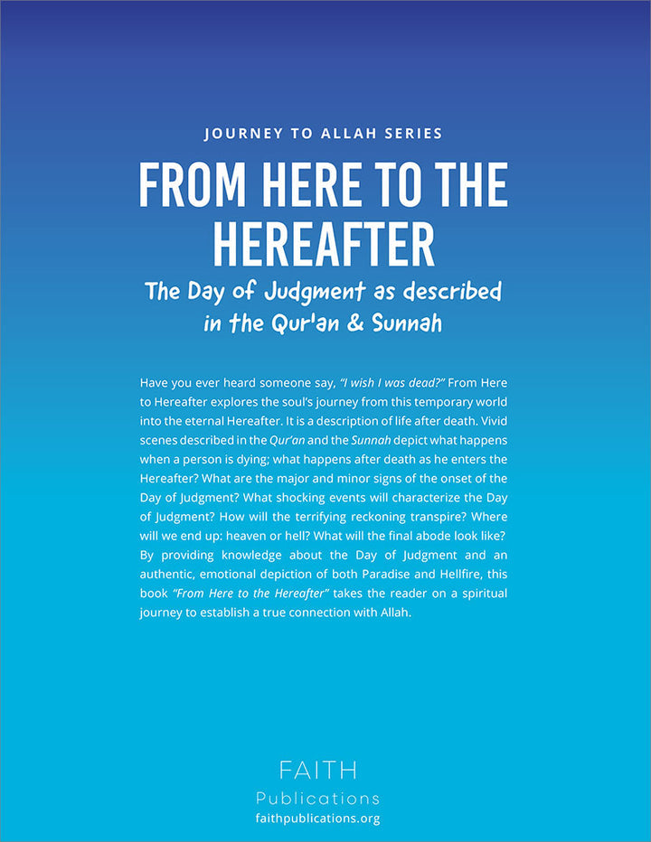 By providing knowledge about the Day of Judgment and an authentic, emotional depiction of both Paradise and Hellfire, From Here to the Hereafter takes the reader on a spiritual journey to establish a true connection with Allah.