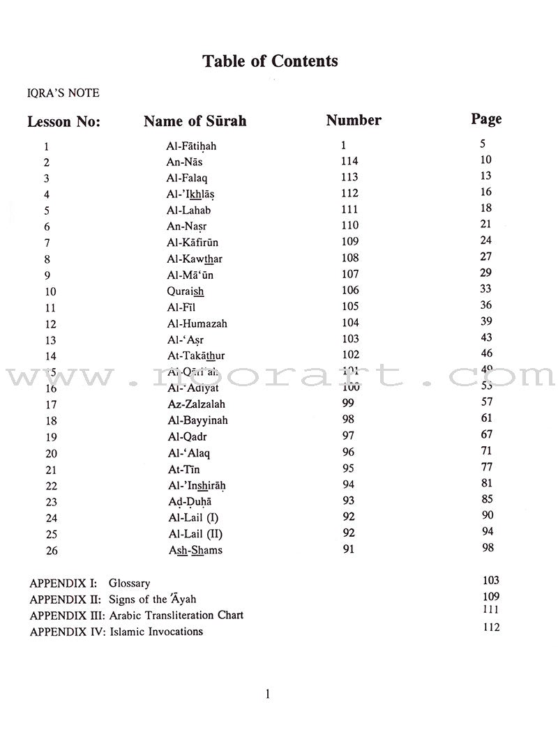 This textbook encompasses the study of the Qur'an from Surah An-Nas (114) to Surah Ash-Shams (91).