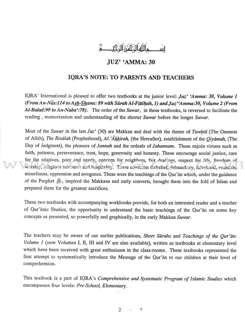The companion to Juz' Amma: 30, For the Classroom vol.1, this textbook presents the meaning, message, themes, and explanations of the thirtieth part of the Qur'an from Surah an-Naba' (78) to Surah al-Balad (90).