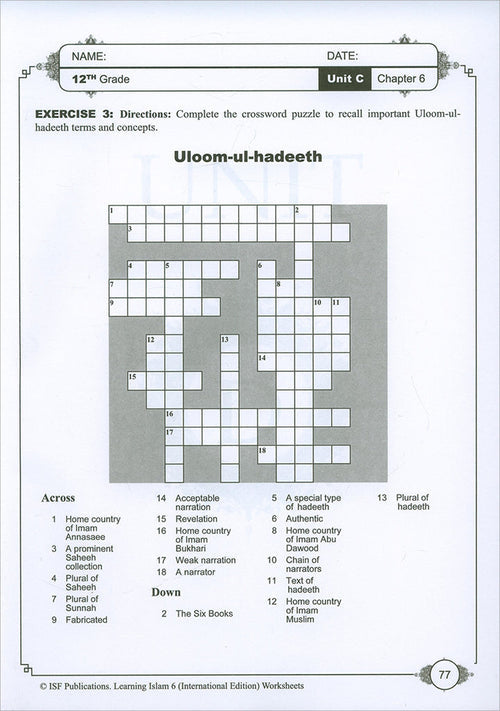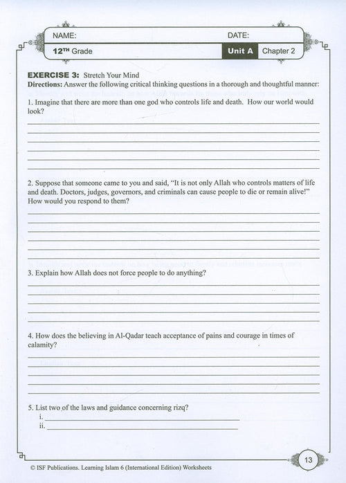 Learning Islam Workbook: Level 6 (12th Grade, Weekend/International Edition