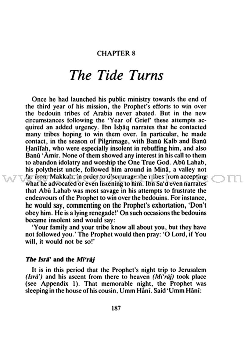 The author has not only breathed a new freshness into the subject but has focused on the Sirah in the context of the Prophet's mission as reflected in the Qur'an. The focus moves beautifully and meaningfully from man to mission, from individual to movement, from past to the present and the future, from chronicle of events to ethos of society and history. In paying homage and showing reverence to the Prophet some authors have exceeded proper limits while others have not been able to adequately highlight the multi-dimensional aspects of the Prophetic life. Dr. Zakana Bashier however succeeded in striking a balance and presenting in the book a graphic and inspiring picture of the Sirah of the Prophet.