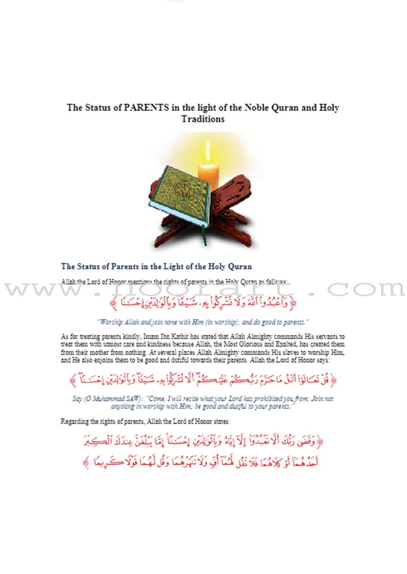 In addition, it provides clear warnings of the penalties from Allah Almighty in this world and the Hereafter for abusing and disrespecting our parents. This is an essential publication for those who want to know the divine injunctions on not only how to treat their mothers and fathers, but also their grandparents, close relatives, and elders.