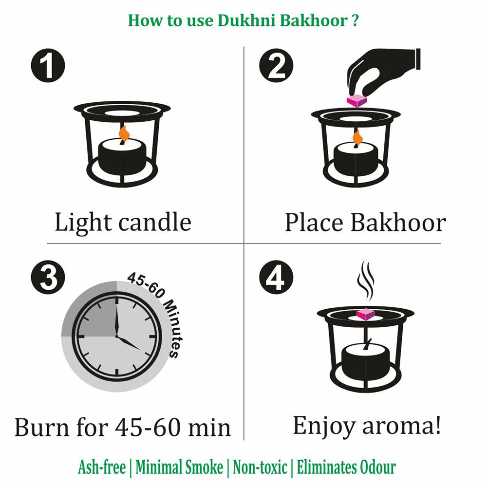 Dukhni Bakhoor is made from a traditional recipe using sustainably sourced natural ingredients for their aromatic properties. Each fragrance is derived from various combinations of aromatic extracts, botanical extracts, essential oils, spices, resins, and woods More long-lasting than agarbattis, dhoop, Kapur, camphor. Home or office fragrance - Relaxation.