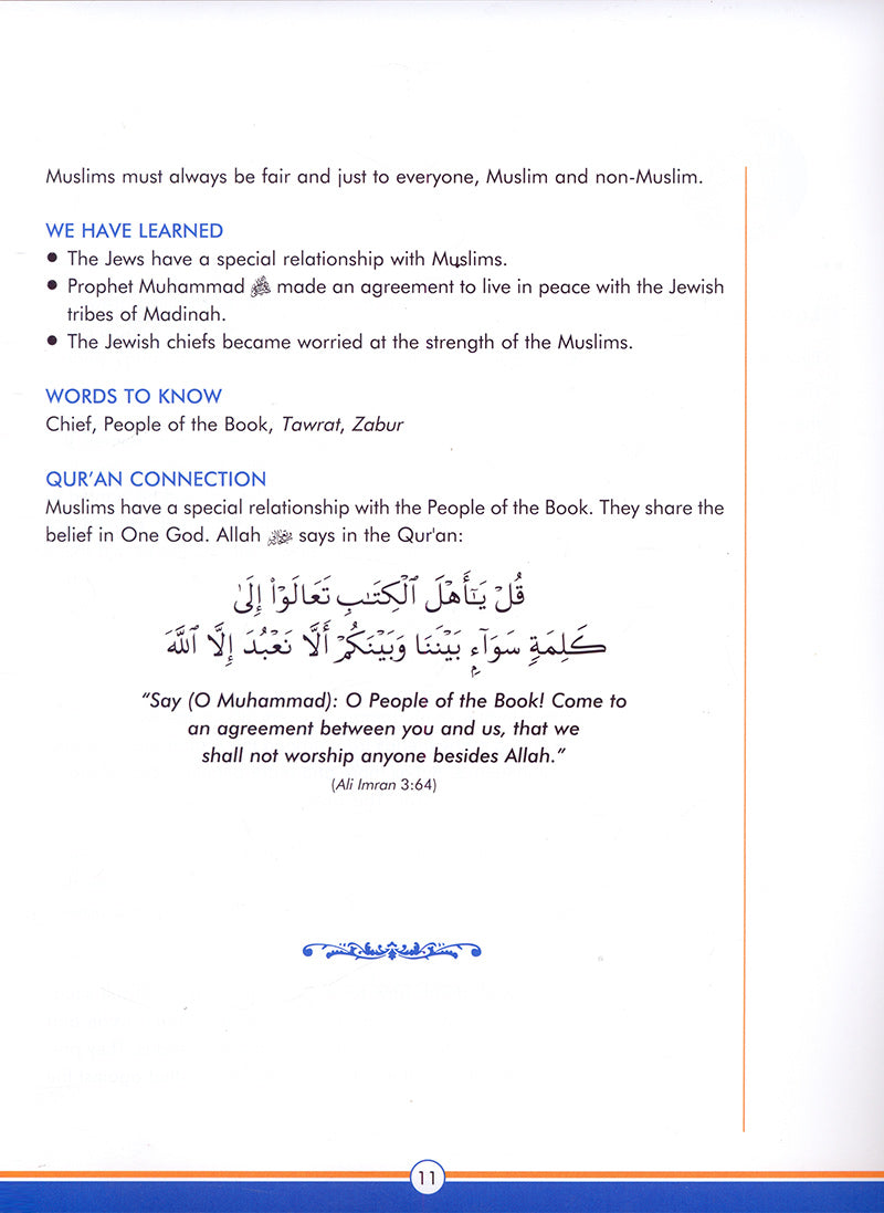 This revised and expanded edition of the popular Mercy to Mankind series covers the post-Hijrah years of the life of Prophet Muhammad (s). It is a textbook to be used in conjunction with IQRA's Seerah and Hadeeth syllabus for junior high. This is part of IQRA' International Educational Foundation's comprehensive program of Islamic studies. This textbook acquaints students with the blessed life and character of Prophet Muhammad (s), so they may develop a deeper appreciation of his mission and message to mankind. The lessons contained within this textbook have been prearranged in a sequential manner designed to facilitate the students’ comprehension of the course work. This new revision includes full-color maps, illustrations, and charts, plus 13 additional lessons besides the main17 lessons. These 30 lessons cover the Madinah period on the following topics: