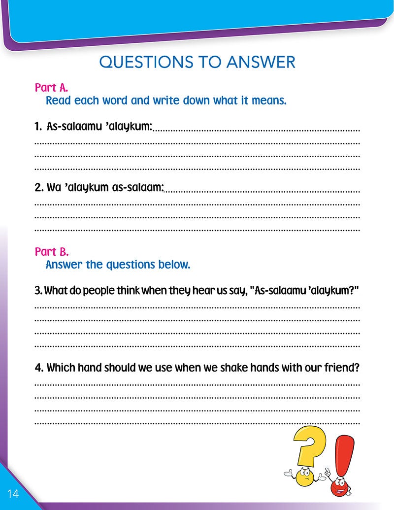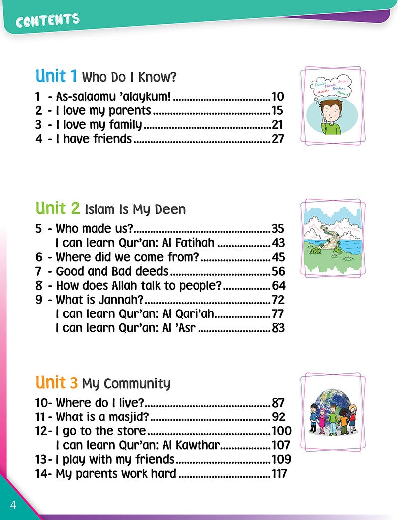 Noorart is pleased to present this textbook and coloring book for grades 1-2, it’s an excellent, child-friendly Islamic curriculum in modern, contemporary English. This book is designed to meet the needs of parents, weekend schools and full time schools. You will find a complete explanation of Islamic beliefs, practices and values presented in a simplistic style, age appropriate for the various levels and with charming illustrations and engaging text. This is a complete textbook of Islamic studies geared towards students who are eager to learn and parents and teachers who are equally as eager to teach.