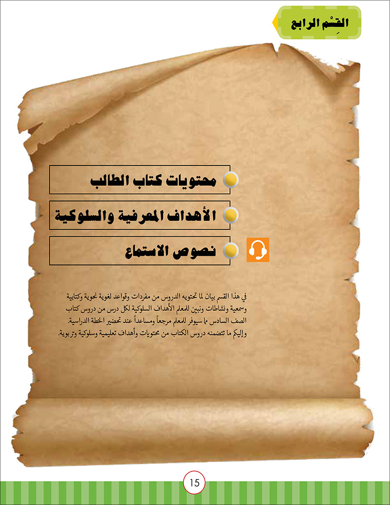 The Teacher Guide presents the instructor with lesson objectives and provides suggested ways on how to teach the material included in each lesson. This guide breaks down the lesson into parts while mapping the specific concepts the student is supposed to be taught in each lesson. A concise introduction informs the instructor of the main principles of Arabic languages instruction both in terms of objectives, methods and activities.