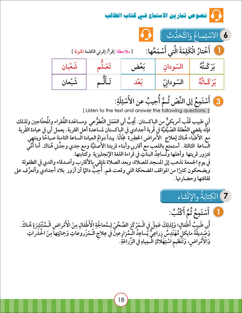 - نصوص استماع وأسئلة فهم تساعد على تطوير الطلاقة والتعبير الشفوي.