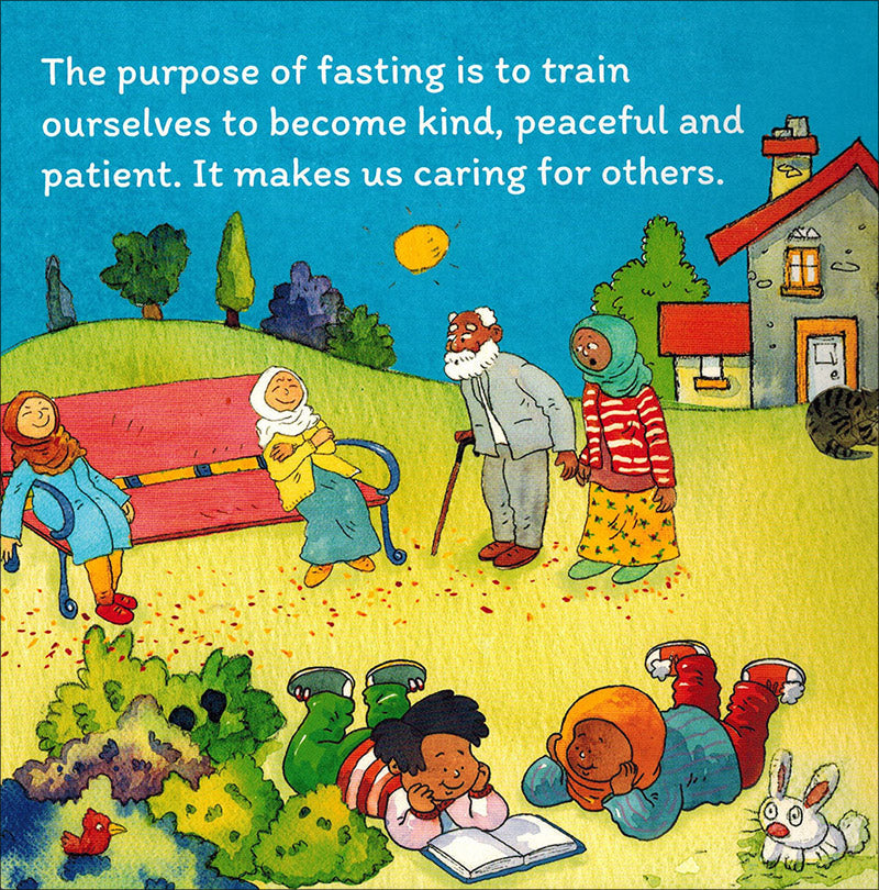 This book focuses on the spiritual growth that occurs during Ramadan. It explains how the month is a time when the “doors of Paradise are open,” encouraging children to read the Quran and develop good habits such as self-discipline. It emphasizes compassion for those in need and concludes with the festive celebration of Eid.