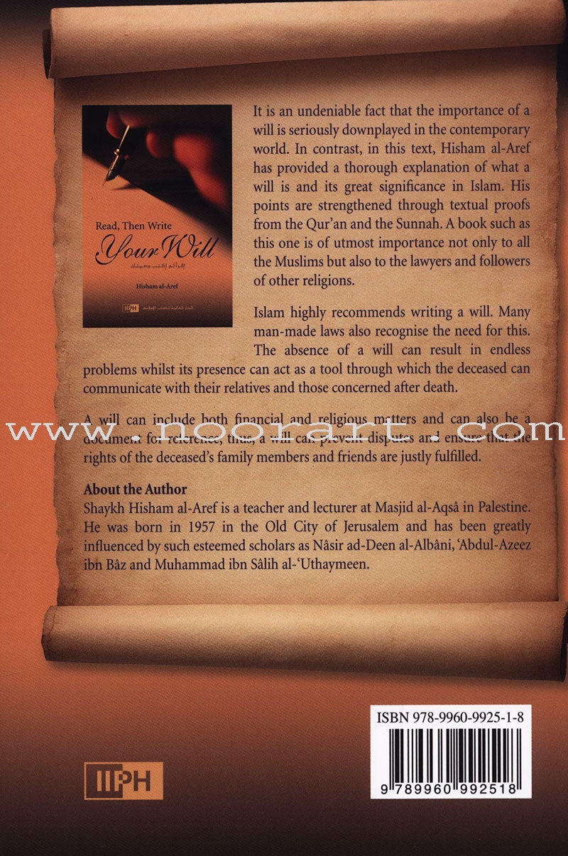 This book deals with the importance of having an Islamic will. Author Hisham Ibn Fahmi Ibn Moussa Al-Aref explains what a will is and how important it is in Islam.