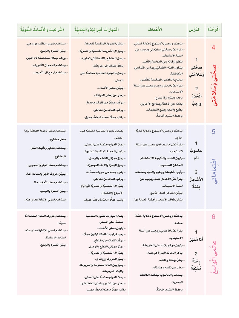 - الوحدة السادسة: عالمي الواسع. الدرس الأول: أنا مميز، والثاني: رحلة ممتعة.