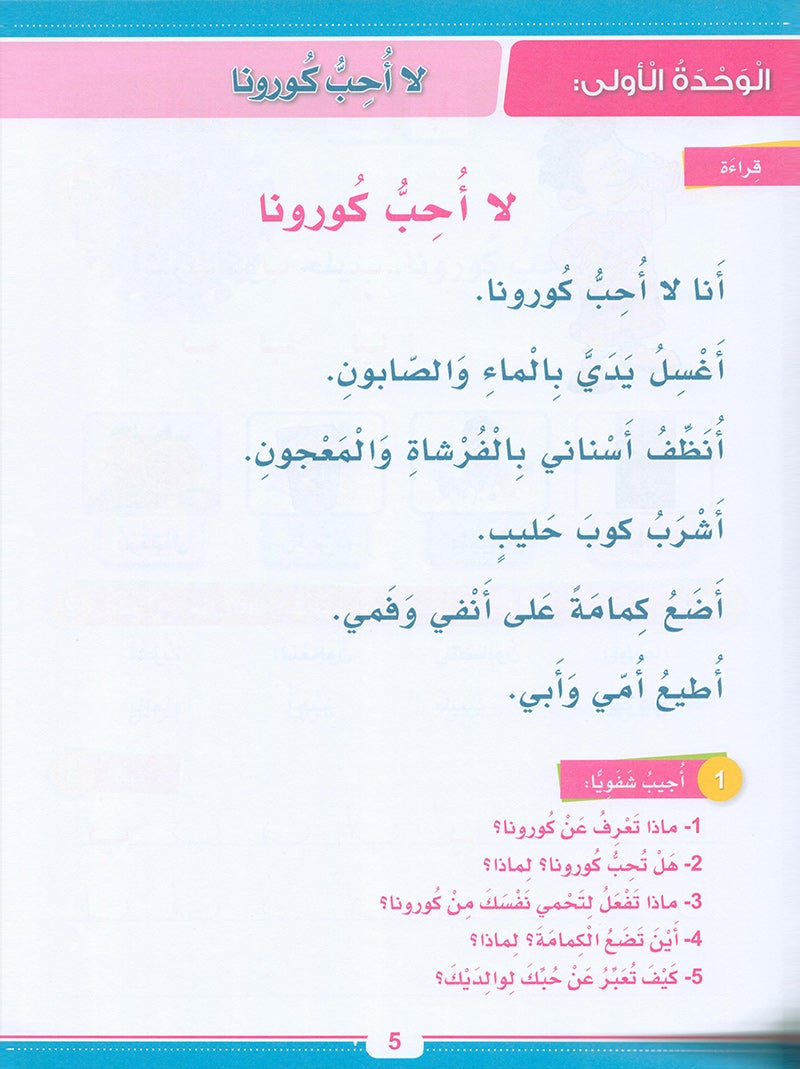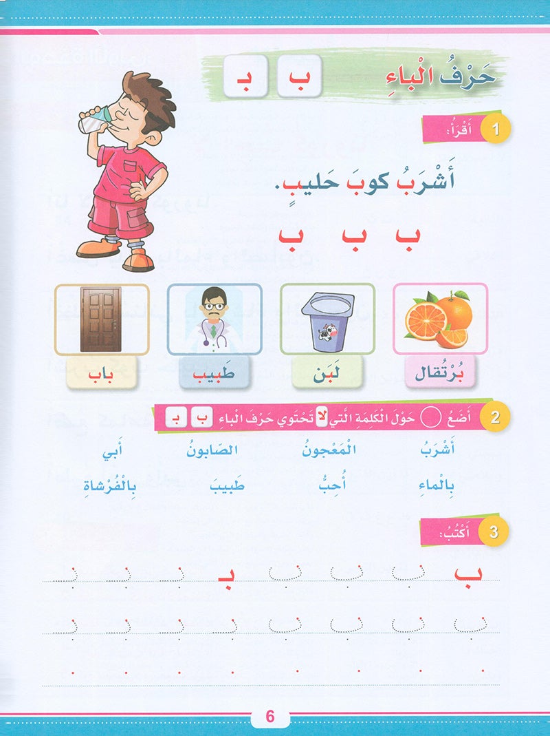 The content is presented in six educational units with a hierarchical progression that connects the subsequent with the previous, and an organized cumulative review that makes the language learning process easy. Each unit includes a reading text presenting a number of letters, where the learner extracts the letter from the text sentences, then utilizes the vocabulary of the text in reading and writing exercises on the learned letters, enhancing training in memory, observation, focus, and attention.