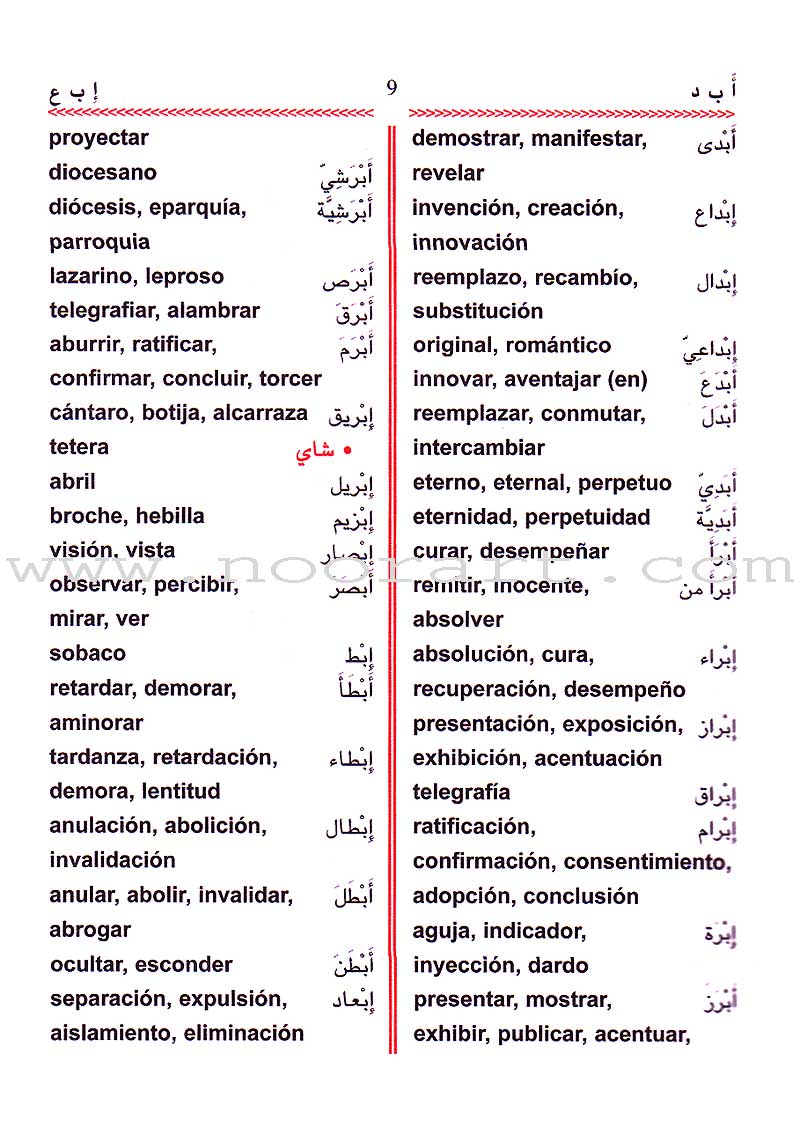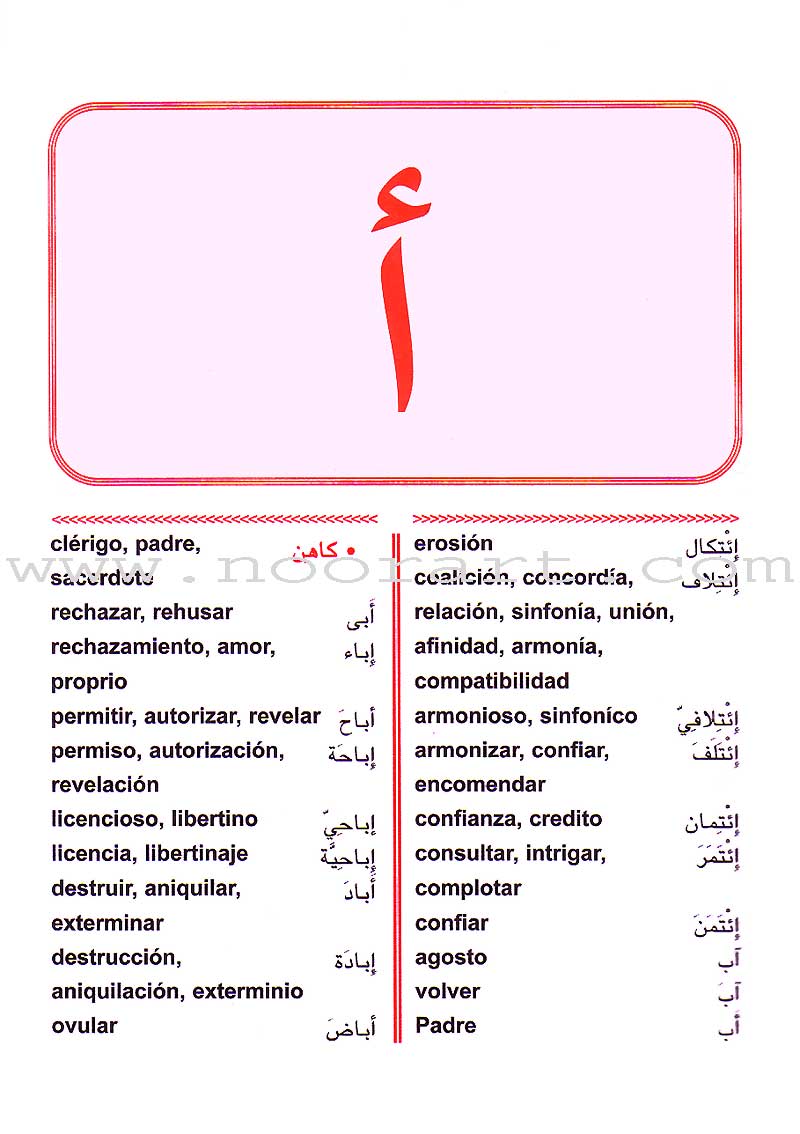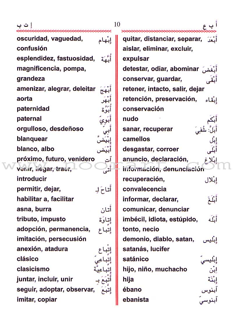 هذا الكتاب يعد واحد من مجموعة من القواميس التي تؤلّف وحدة متكاملة غايتها أن تبقى المرجع الصالح للوصول إلى المعنى الذي يبتغيه. كما تسهّل عليه الوصول إلى تحديد معاني الكلمات. يحتوي هذا القاموس على ما يقارب 15,000 كلمة عربية ومرادفاتها باللغة الإسبانية.