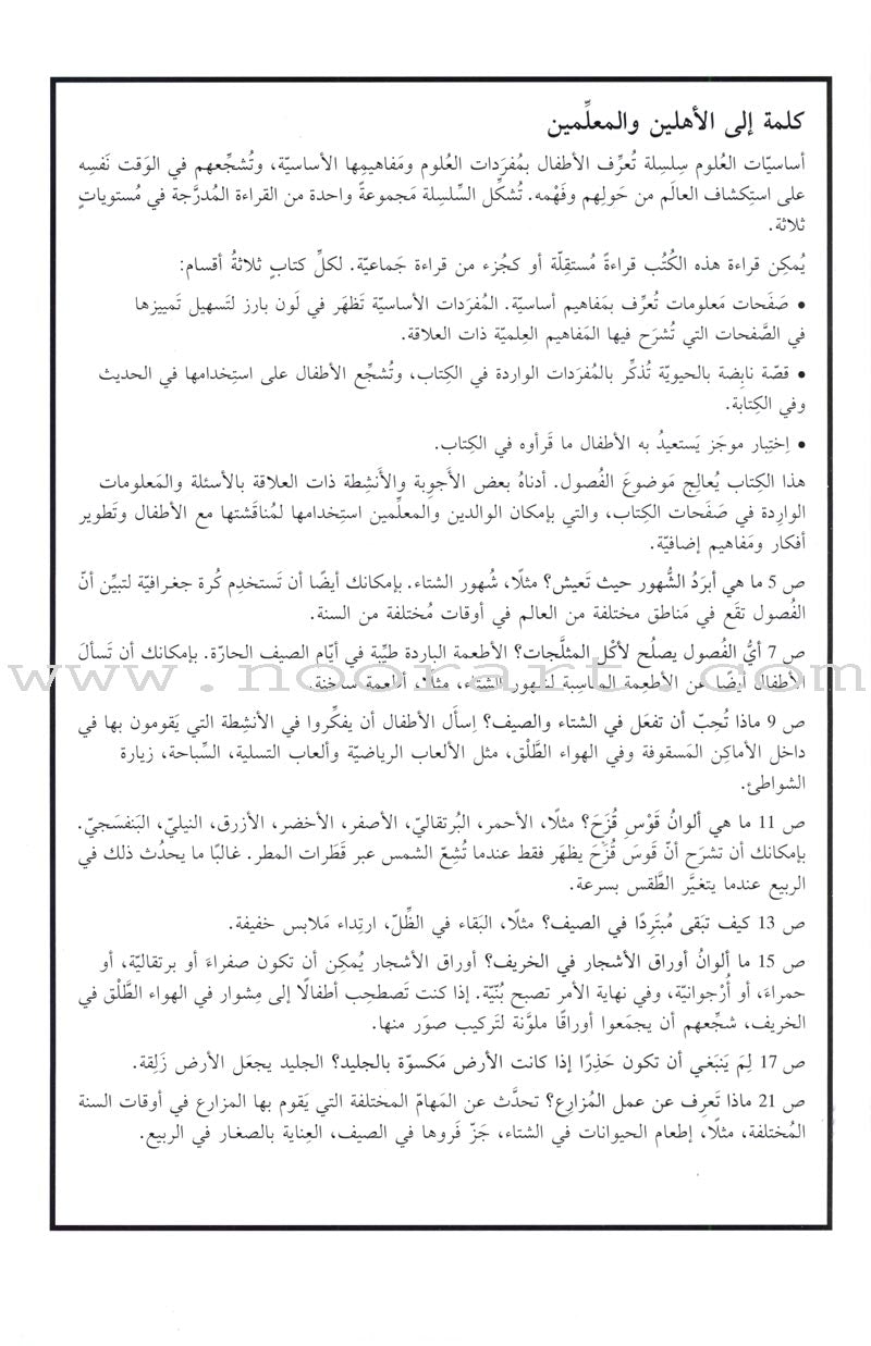 تُعرِّف سلسلة أساسيات العلوم- القُرّاء الصِّغار على المُطالَعة غير القَصَصيّة، كلّ كِتاب مُصمَّم لزيادة مهارة القراءة ويَجمَع بين نصّ سَرْديّ، ولُغة مُيسَّرة، وتَبويب يَسهُل تَتبُّعُه.