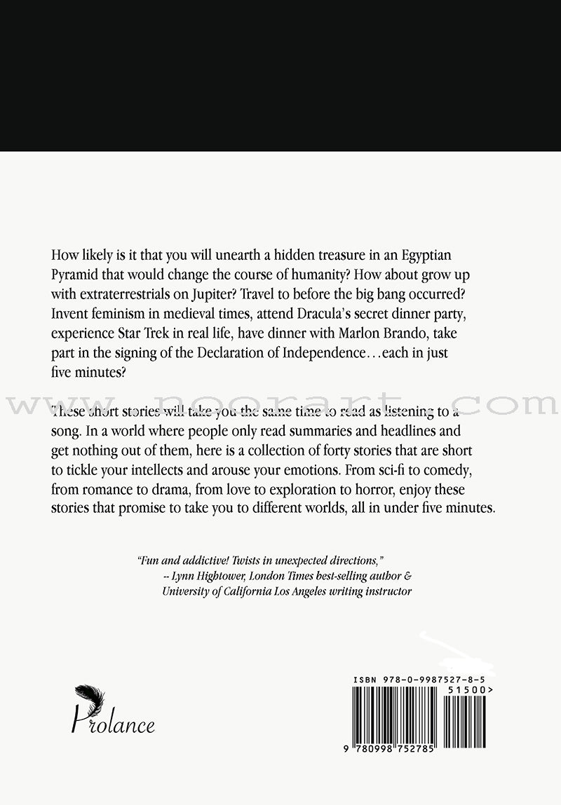 These short stories will take you the same time to read as listening to a song. In a world where people only read summaries and headlines and get nothing out of them, here is a collection of forty short stories that will tickle your intellects and arouse your emotions. From sci-fi to comedy, from romance to drama, from love to exploration to horror, these stories will take you to different worlds, all in under five minutes.