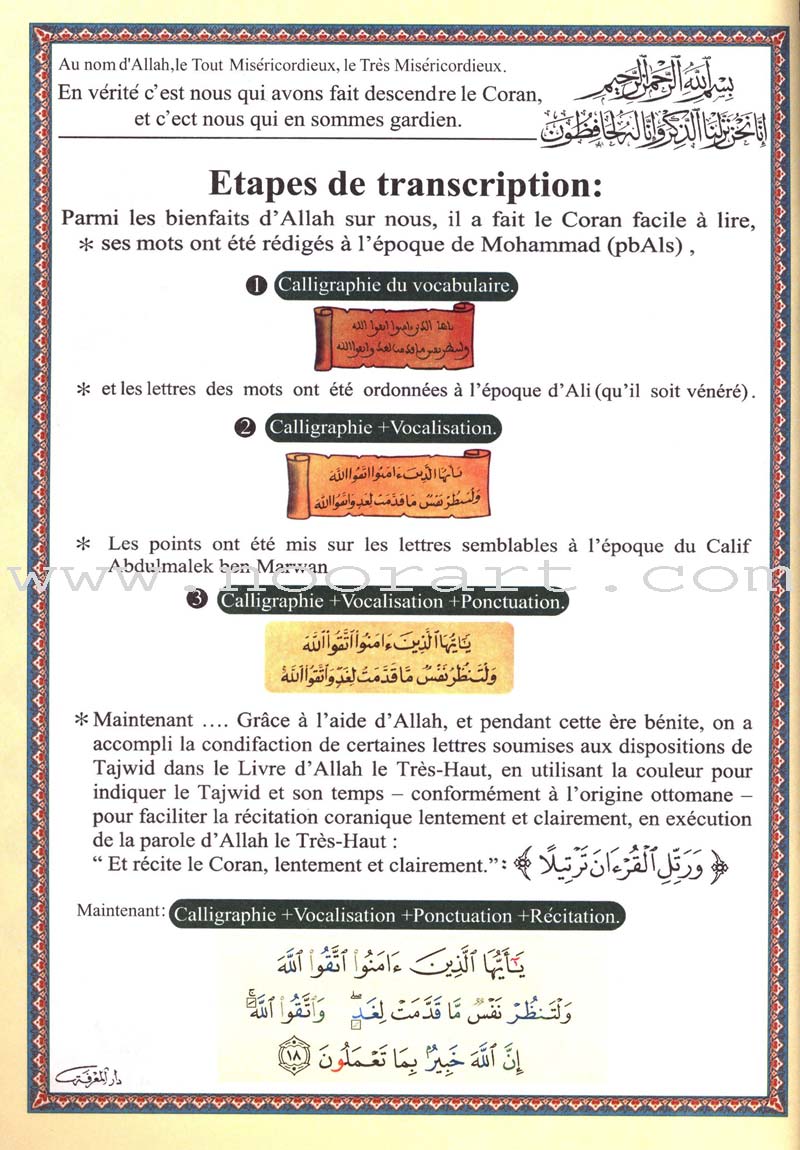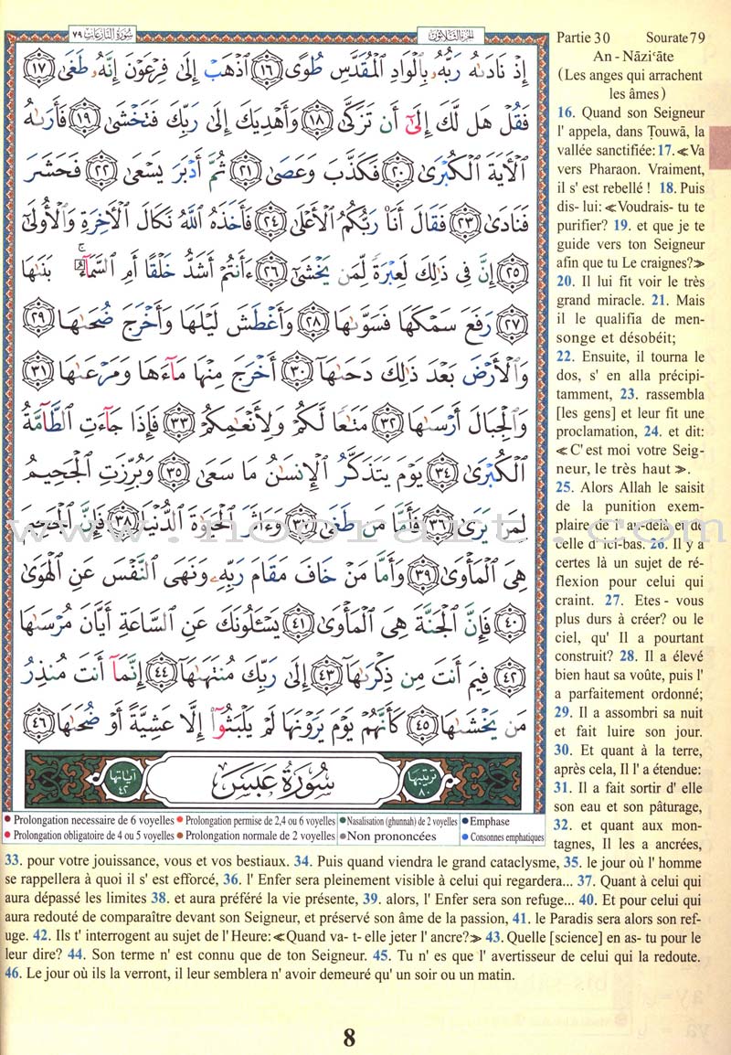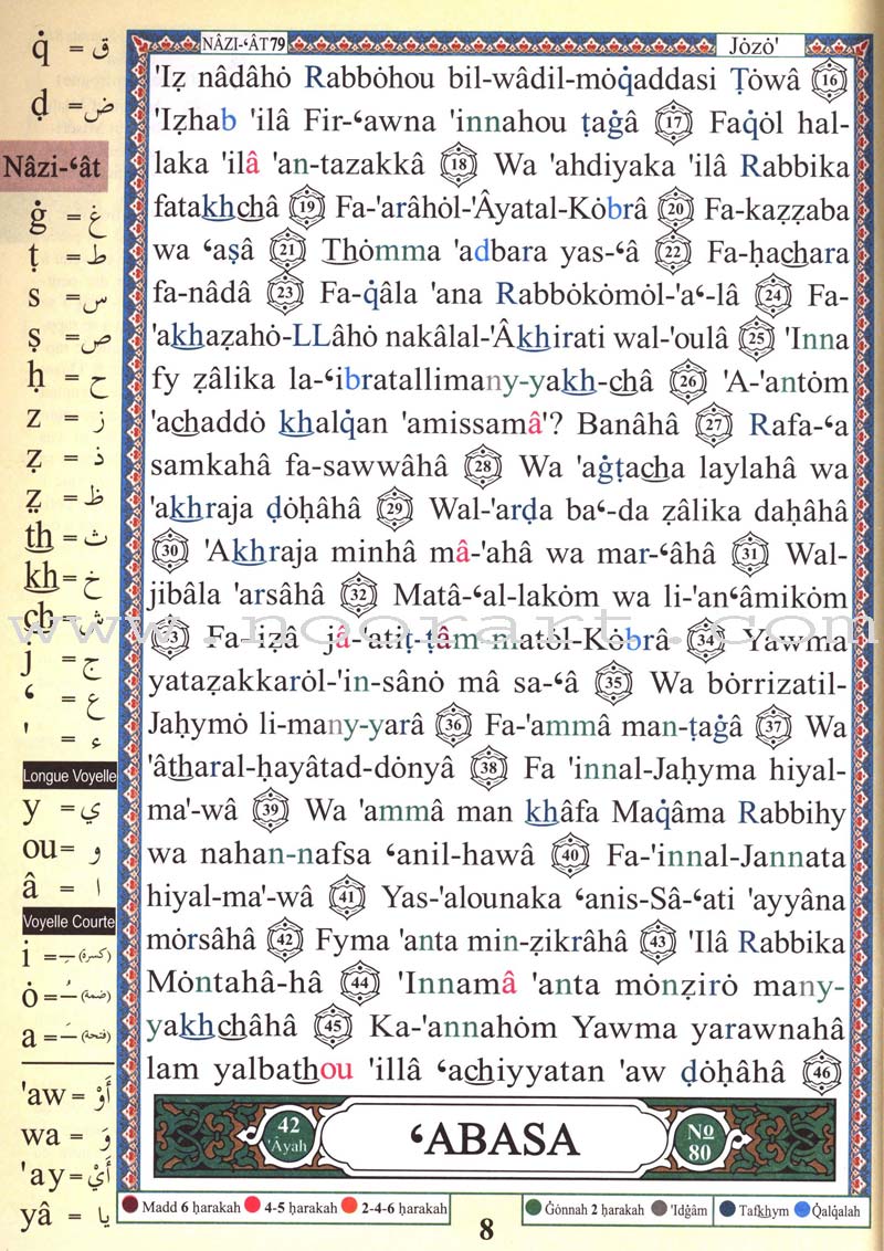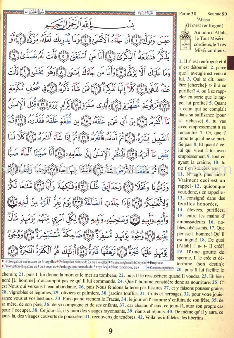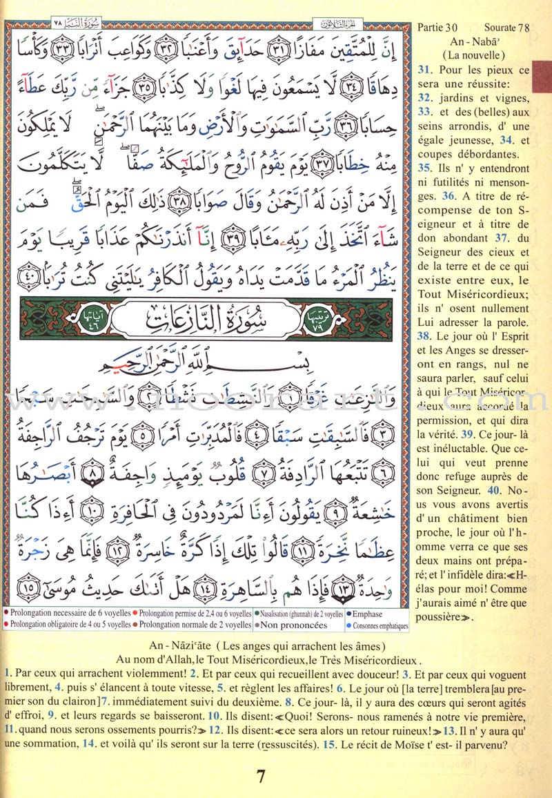 This product covers Juz’ Amma (Part 30) of the Holy Qur’an and includes a translation into French and translation.