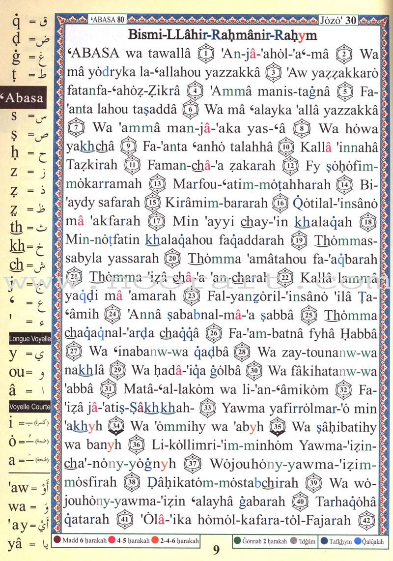 Tajweed Qur'an (Juz' Amma, With French Translation and Transliteration)