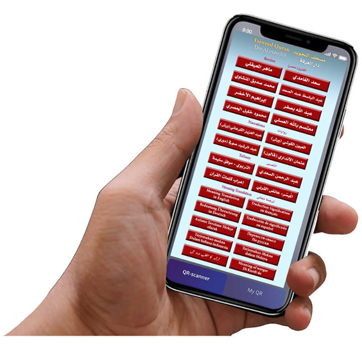 This Quran is QR Coded and can be used with any QR Reader app, features: