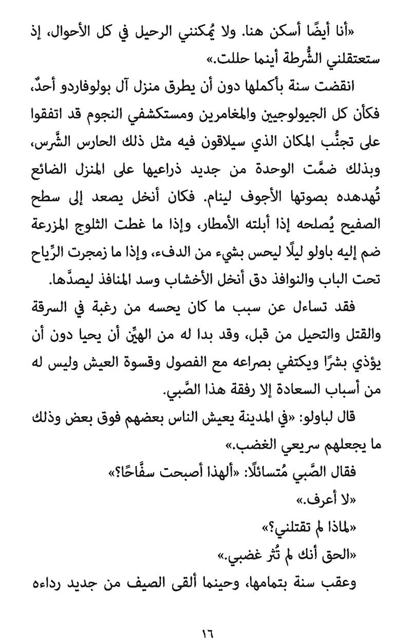 كان هناك طفل، ولد لابوين لم يحبا بعضهما قط نما الصبي كما كانت الحشائش تنمو حول مزرعة والديه. يلطخه الطين وتضربه الرياح حتى صارت اذناه مثل الجناحين كان اسمه ( باولو ) باولو بولوفارد وفي يوم عادي من ايام ال بولوفارد، كان باولو يركض وراء الثعابين عندما رأى غريبا على الطريق المؤدية الى المزرعة.