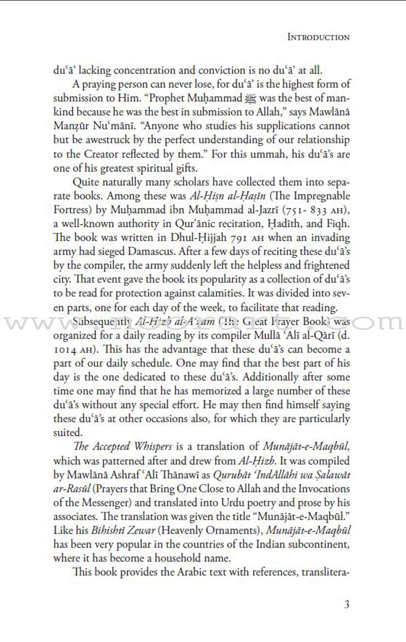 This selection was originally compiled by Mawlana Ashraf Ali Thanawi under the title Munajaat-e-Maqbul. Like his Bihishti Zewar (Heavenly Ornaments), it has been very popular in the countries of the Indian subcontinent, where it has become a household name. This edition aims at making it accessible to the English-speaking world.