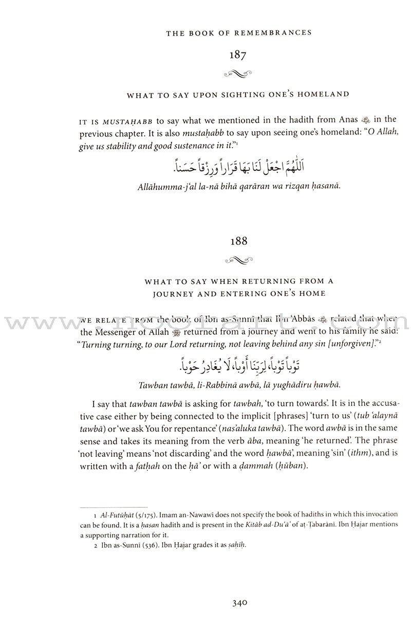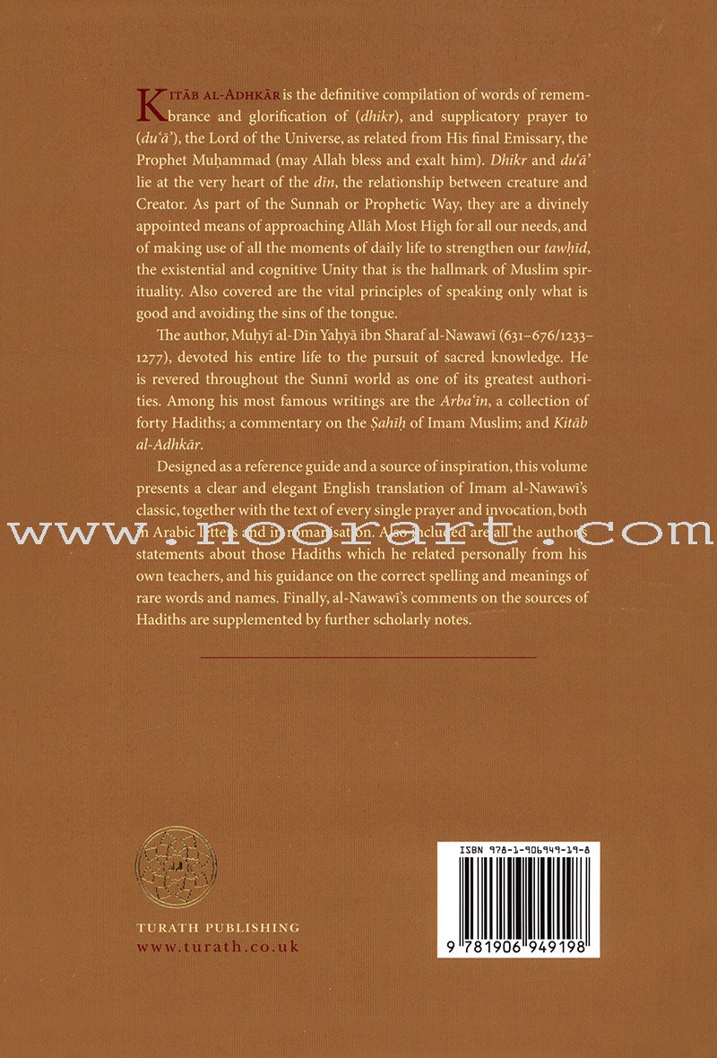 The Book Of Remembrances [Kitab al-Adhkar] - By Imam Yahya ibn Sharaf an-Nawawi Kitab al-Adhkar is the definitive compilation of words of remembrance and glorification of (dhikr), and supplicatory prayer to (du'a), the Lord of the Universe, as related from His final Emissary, the Prophet Muhammad (may Allah bless and exalt him). Dhikr and du'a lie at the very heart of the din, the relationship between creature and Creator.