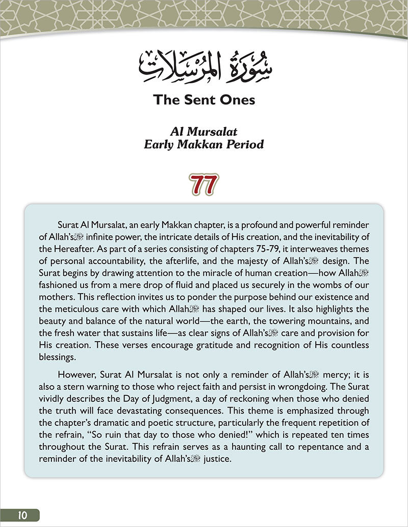 - Surah Introductions: Historical insights about the revelation of all 11 surahs.