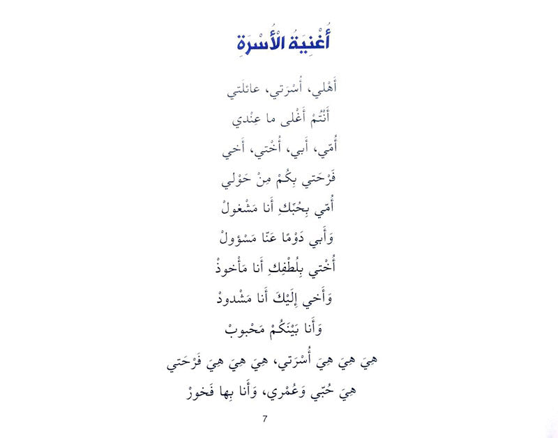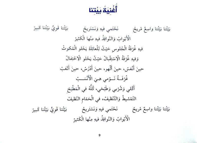 عصري لتلبّي حاجة جيل اليوم ولتبث الحياة والحركة في اللغة. مزدانة برسوم جذّابة تجسّد كلمات الأغاني، ومرفقة بقرص مدمج بحتوي على تسجيل صوتي للأغاني.