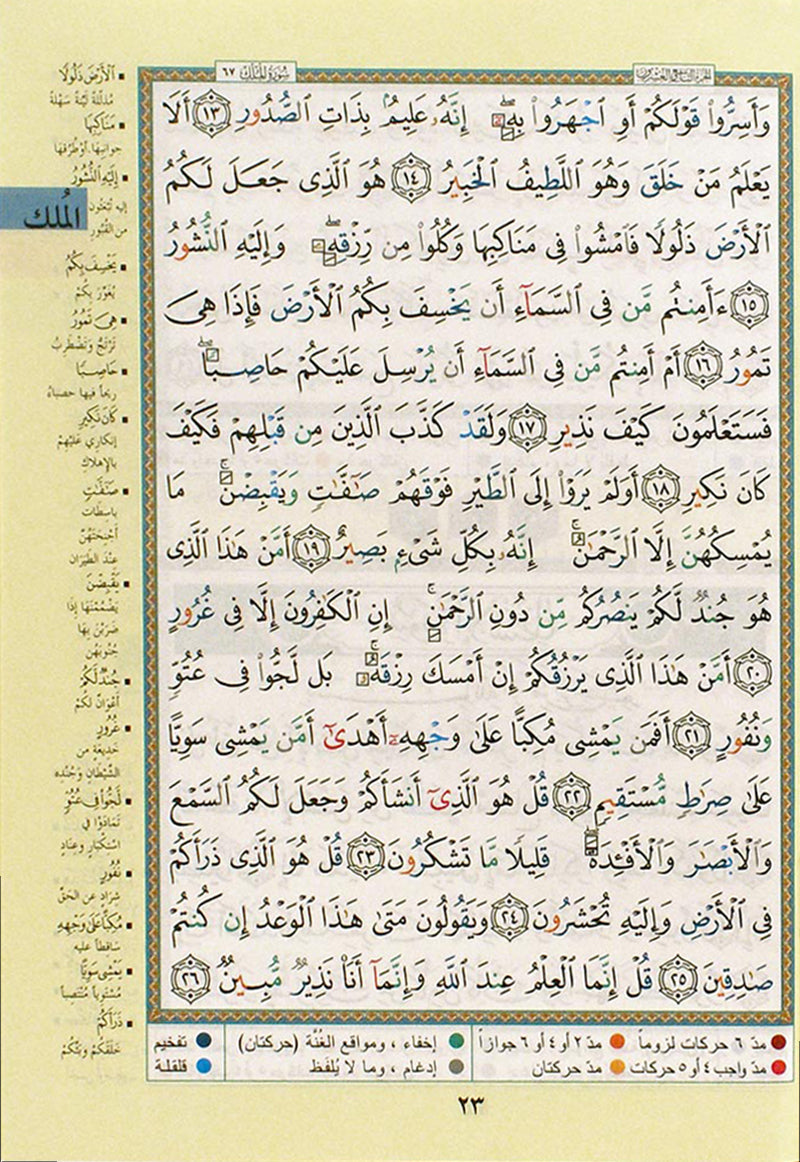 - A set of very useful indexes such as: Surahs Color Index, Subject Index.
