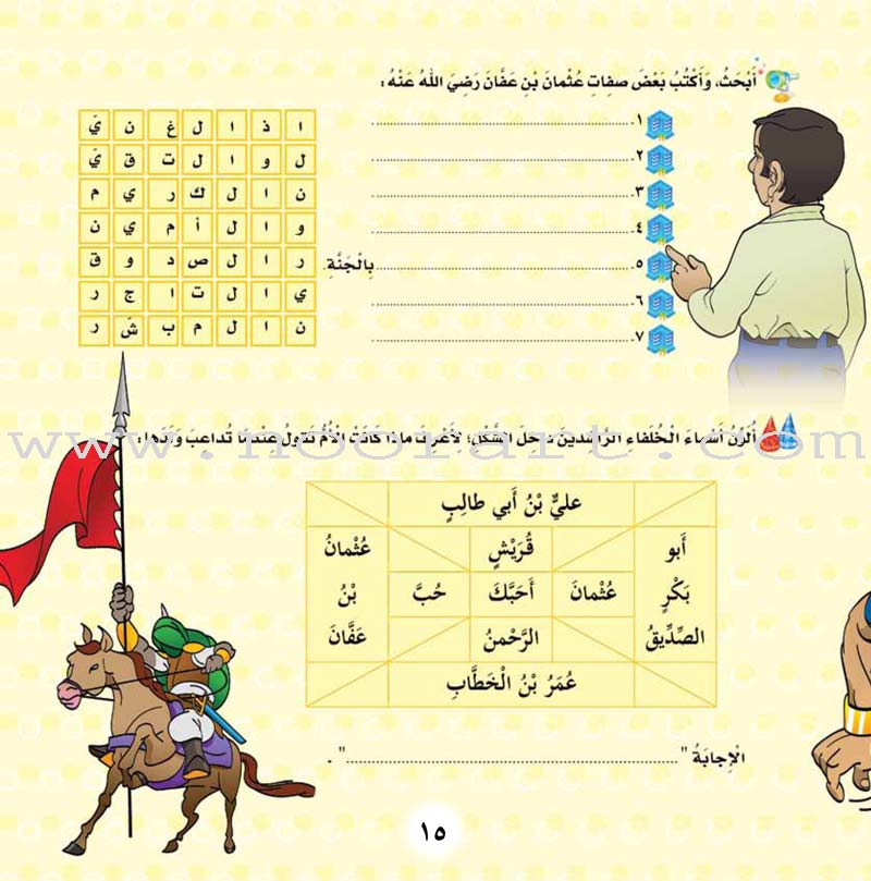 - يرافق كل قصة من قصص سلسلة العشرة المبشرين بالجنة مجموعة من الأنشطة والألعاب اللغوية المحببة للأطفال، تجذبهم إلى قراءة قصص السلسلة ومتابعة ما جاء فيها بشوق واندفاع.