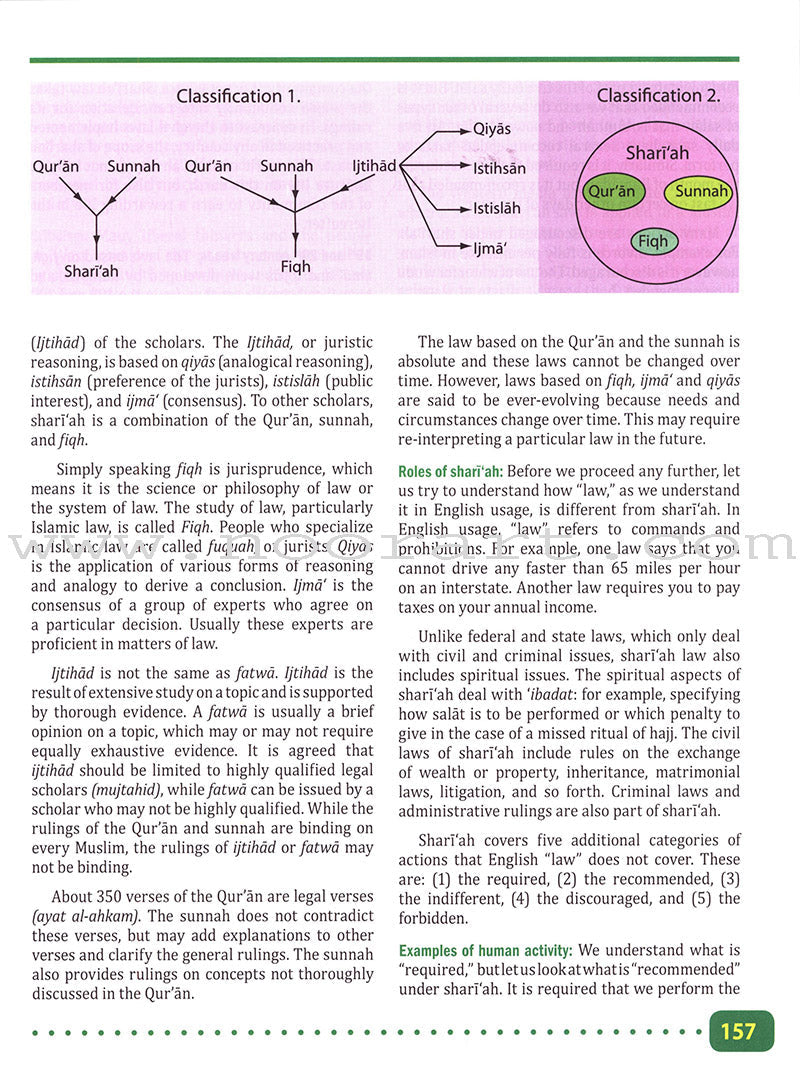 Each level in this curriculum begins with topics on Allah, the Qur’an, the Prophet (s), ahadith, or Sunnah. The early levels emphasize the five pillars, while later levels contain more detailed studies.